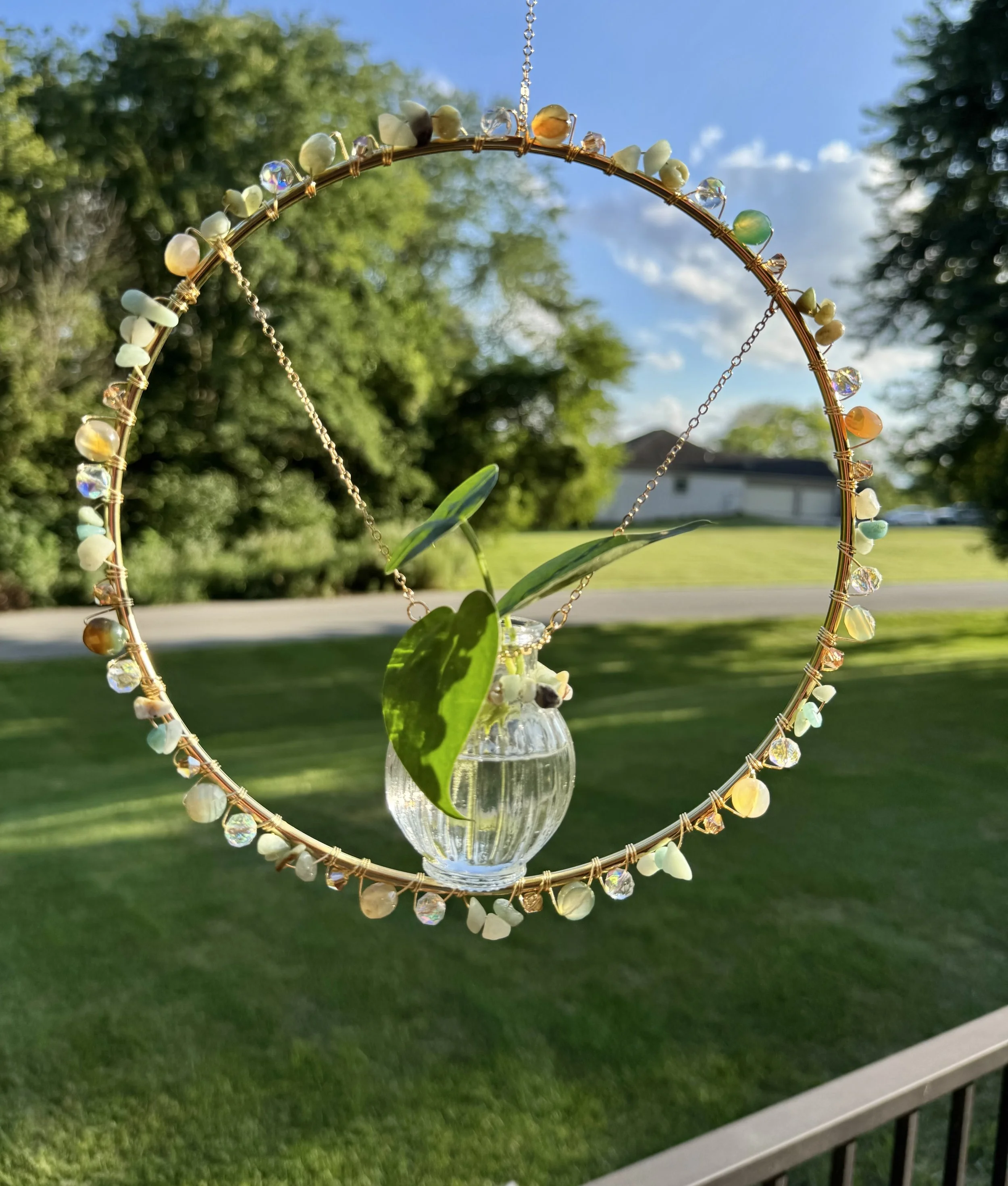 Each unique creation is handcrafted with high quality glass beads, natural stones & agates, dazzling prisms, and charming accents. Designed with creative vision and crafted with intention to bring a touch of whimsical charm and gentle beauty to your space.